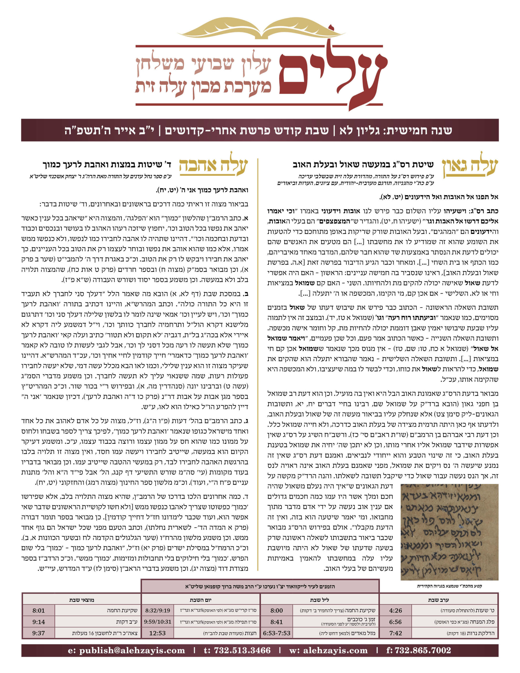 Shabbos Gilyon Parshas Acharei Mos 5782