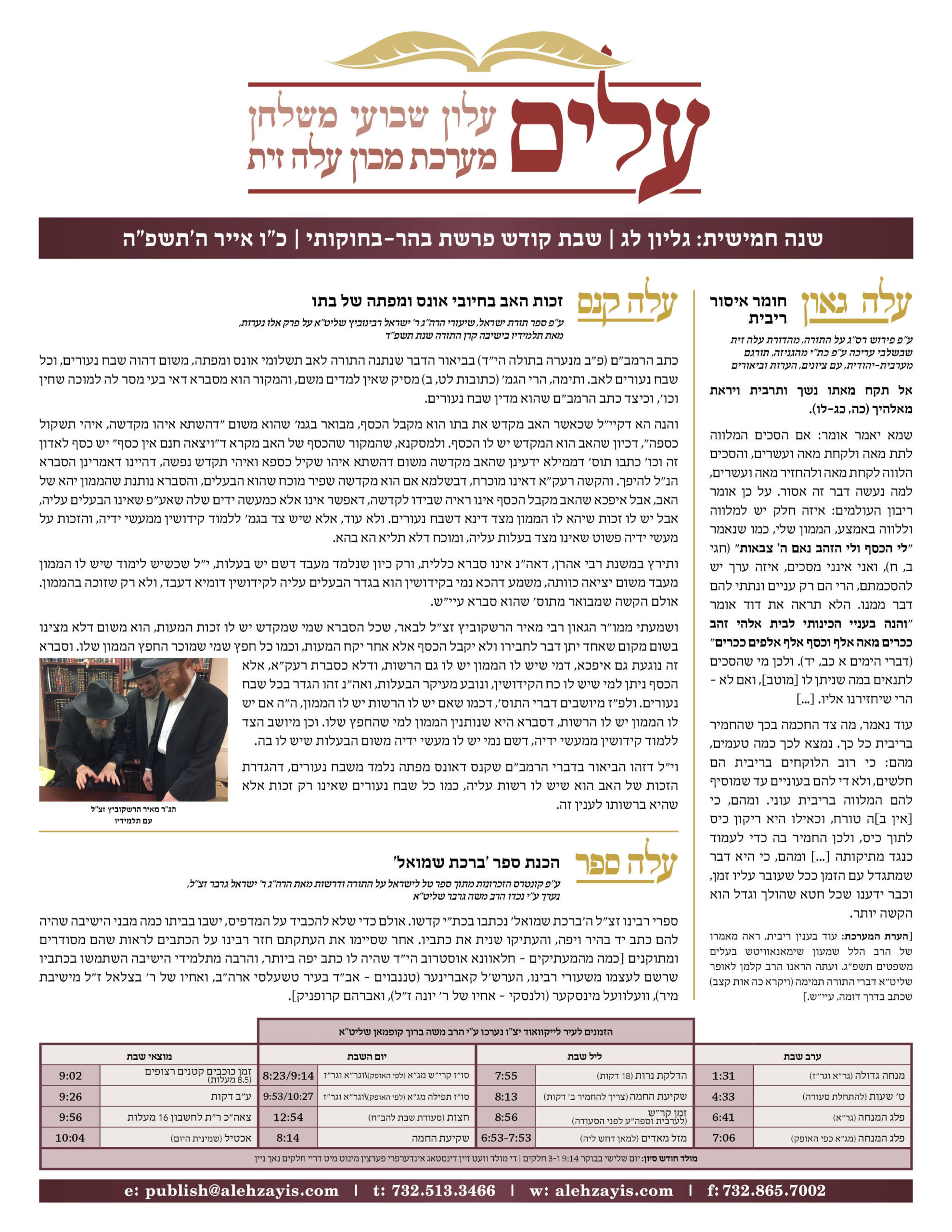 Shabbos Gilyon Behar Bechukosai 5785