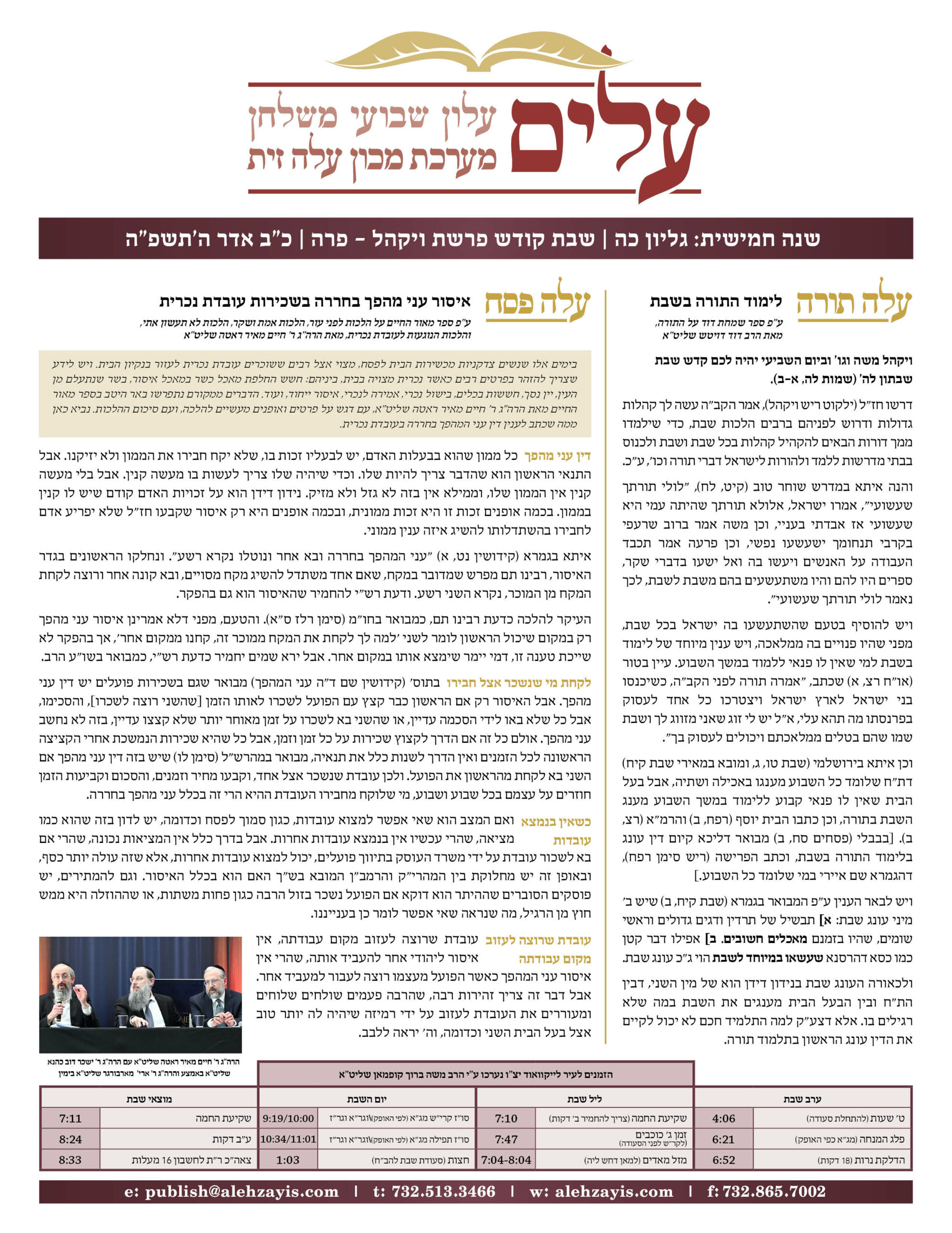Shabbos Gilyon Vayakhel 5785