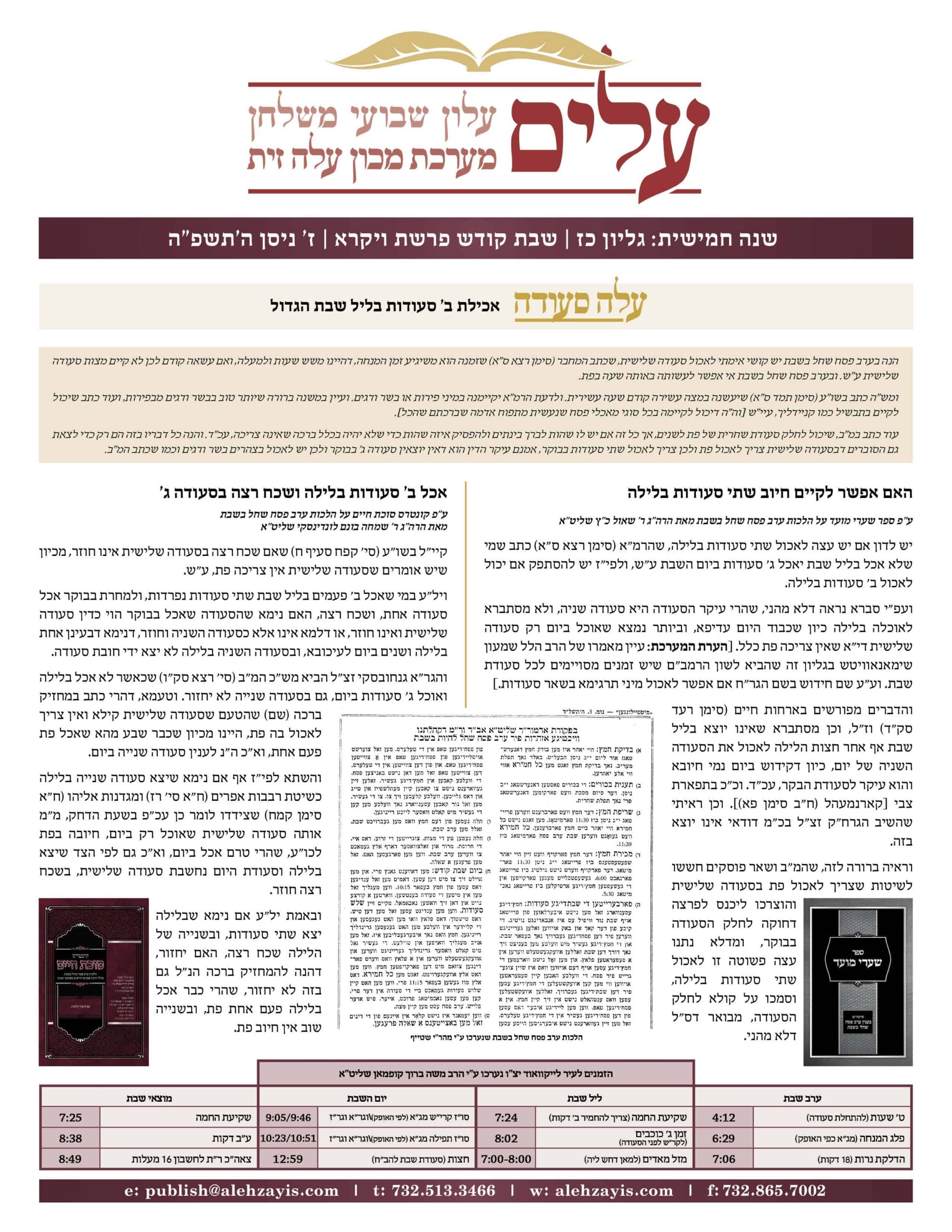 Shabbos Gilyon Pesach 5782