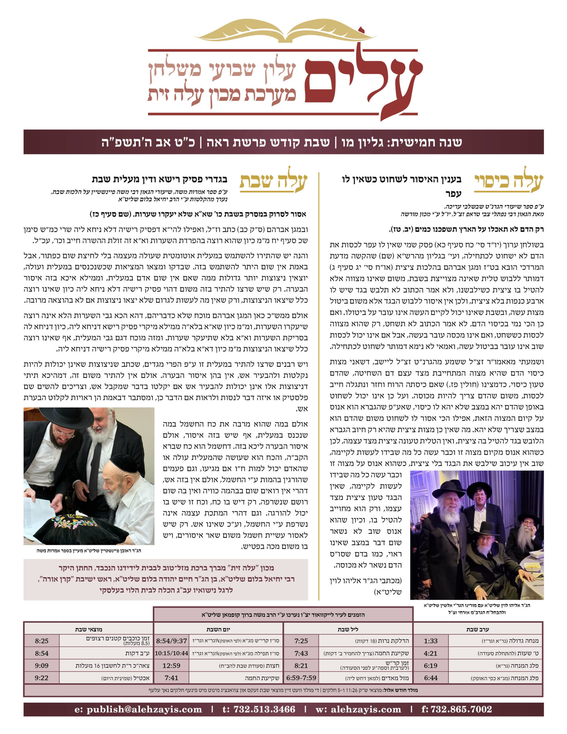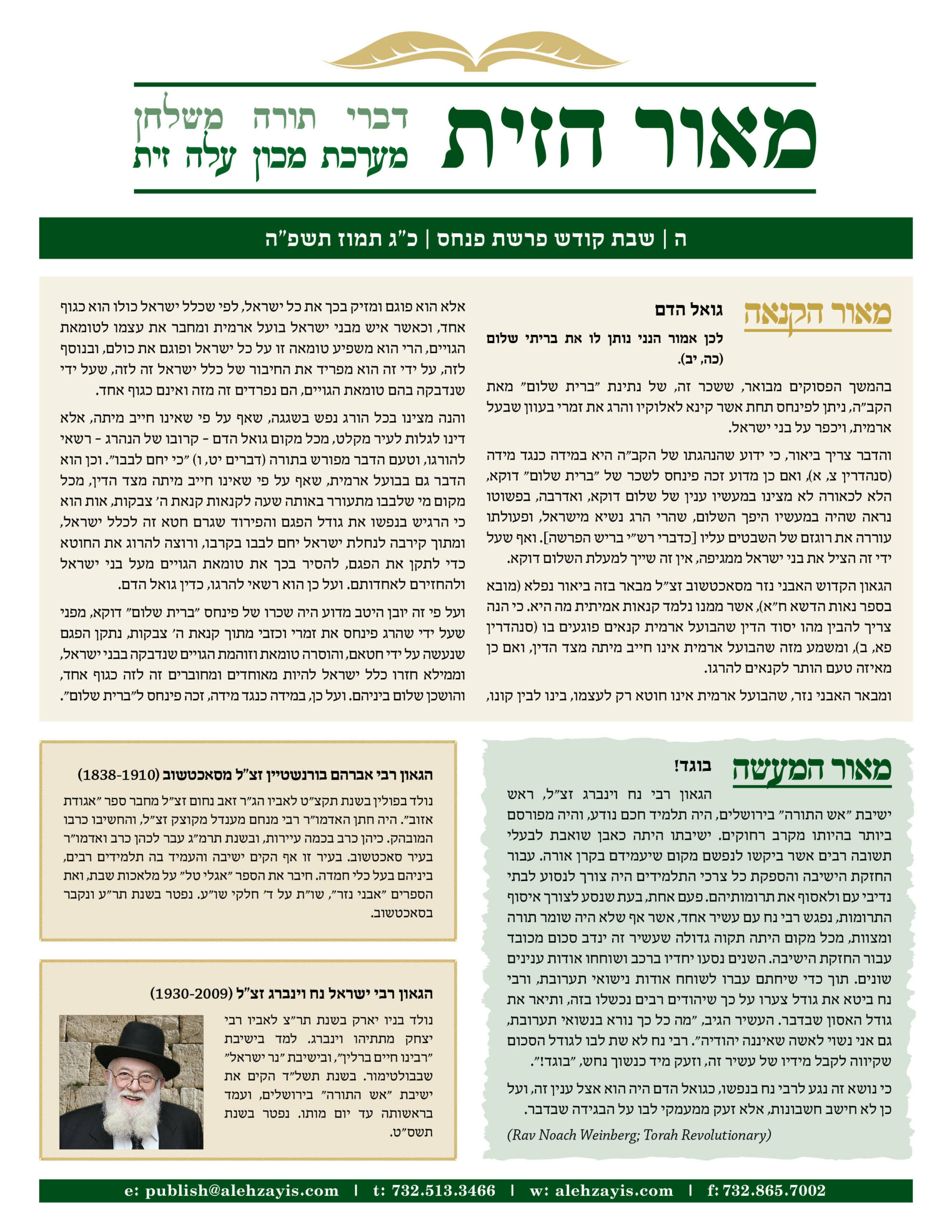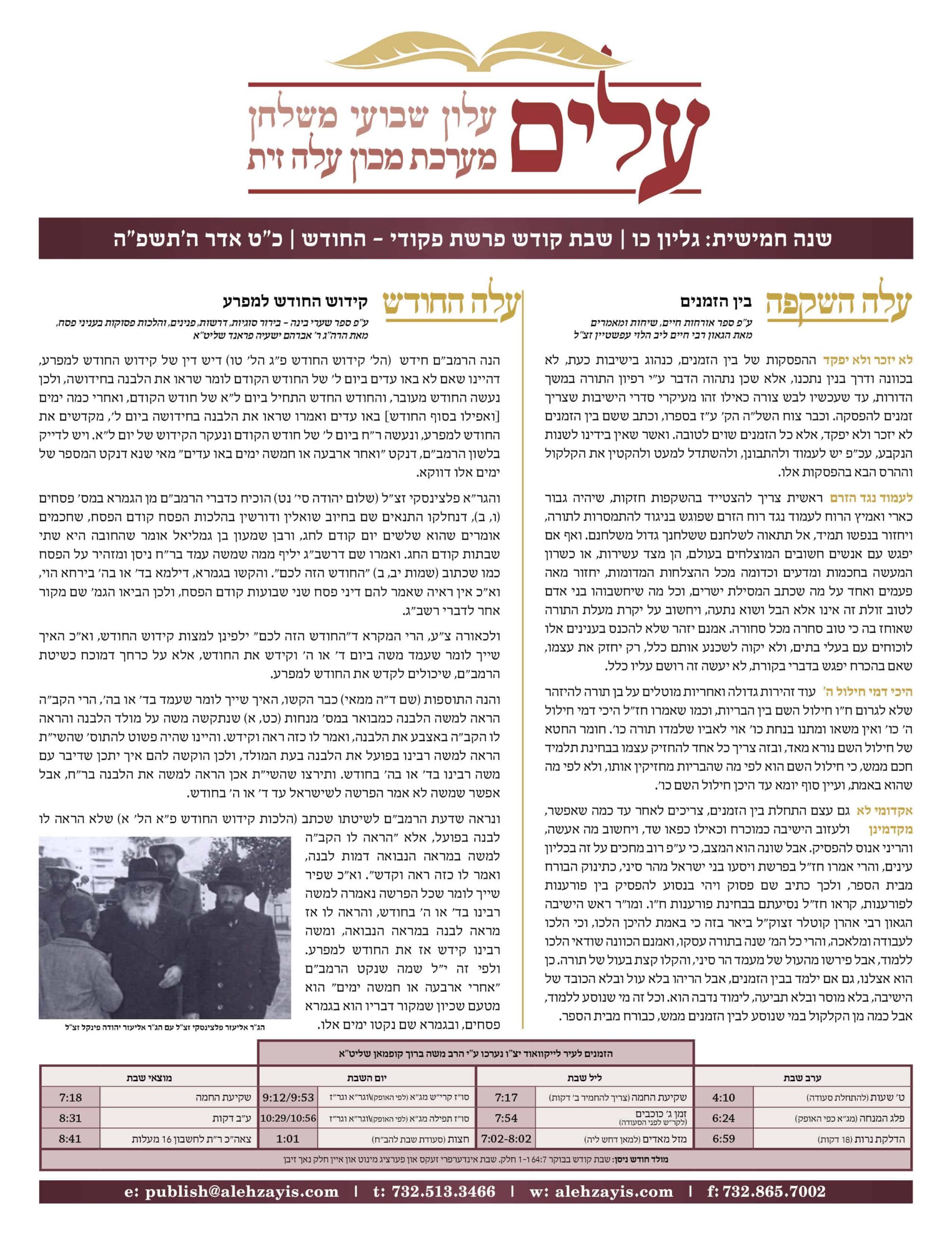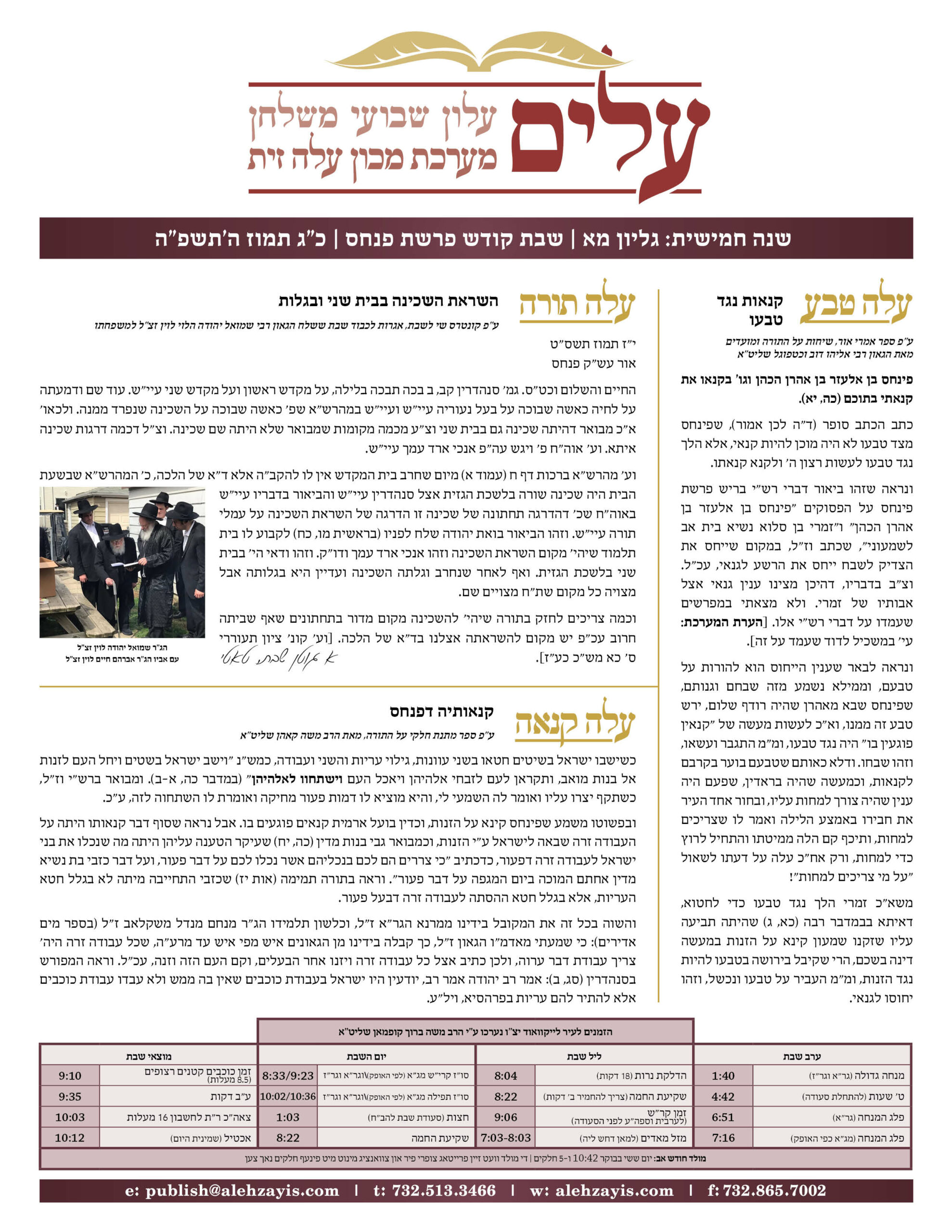 Shabbos Gilyon Pinchas 5784