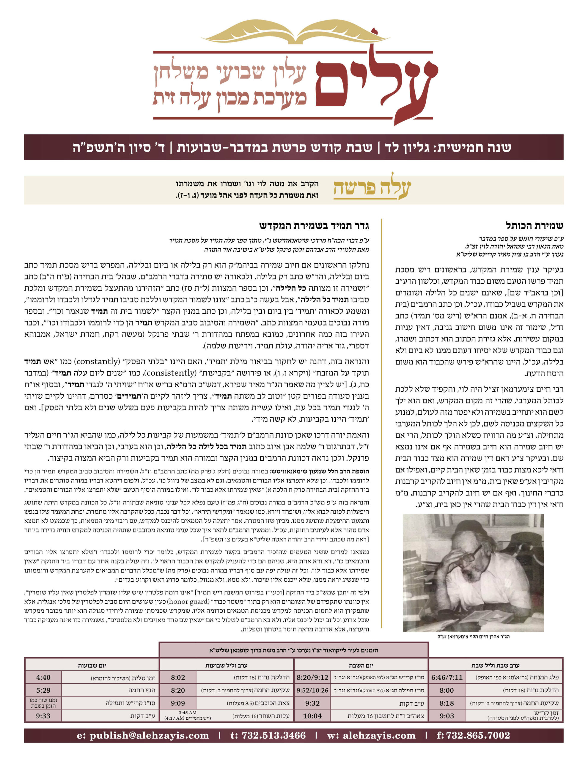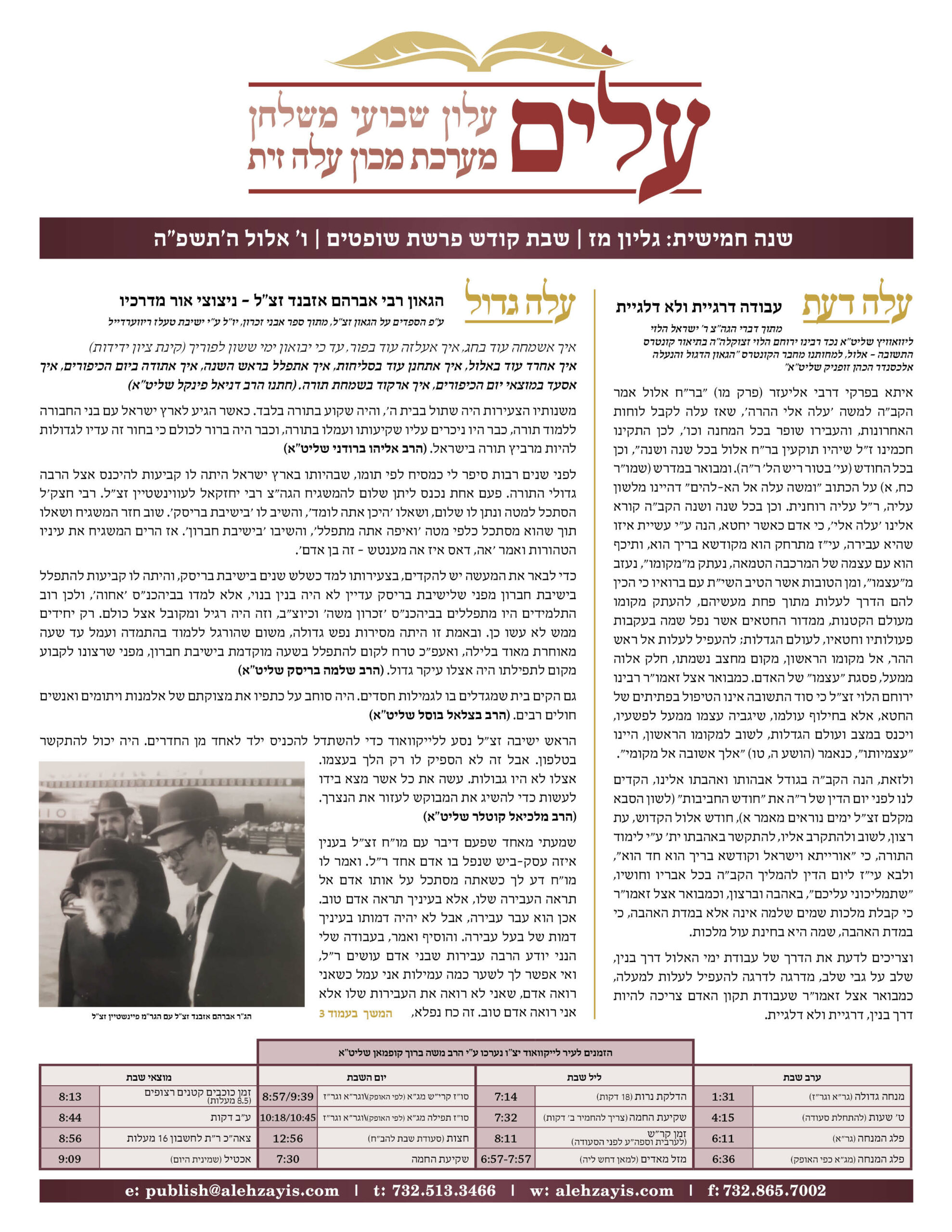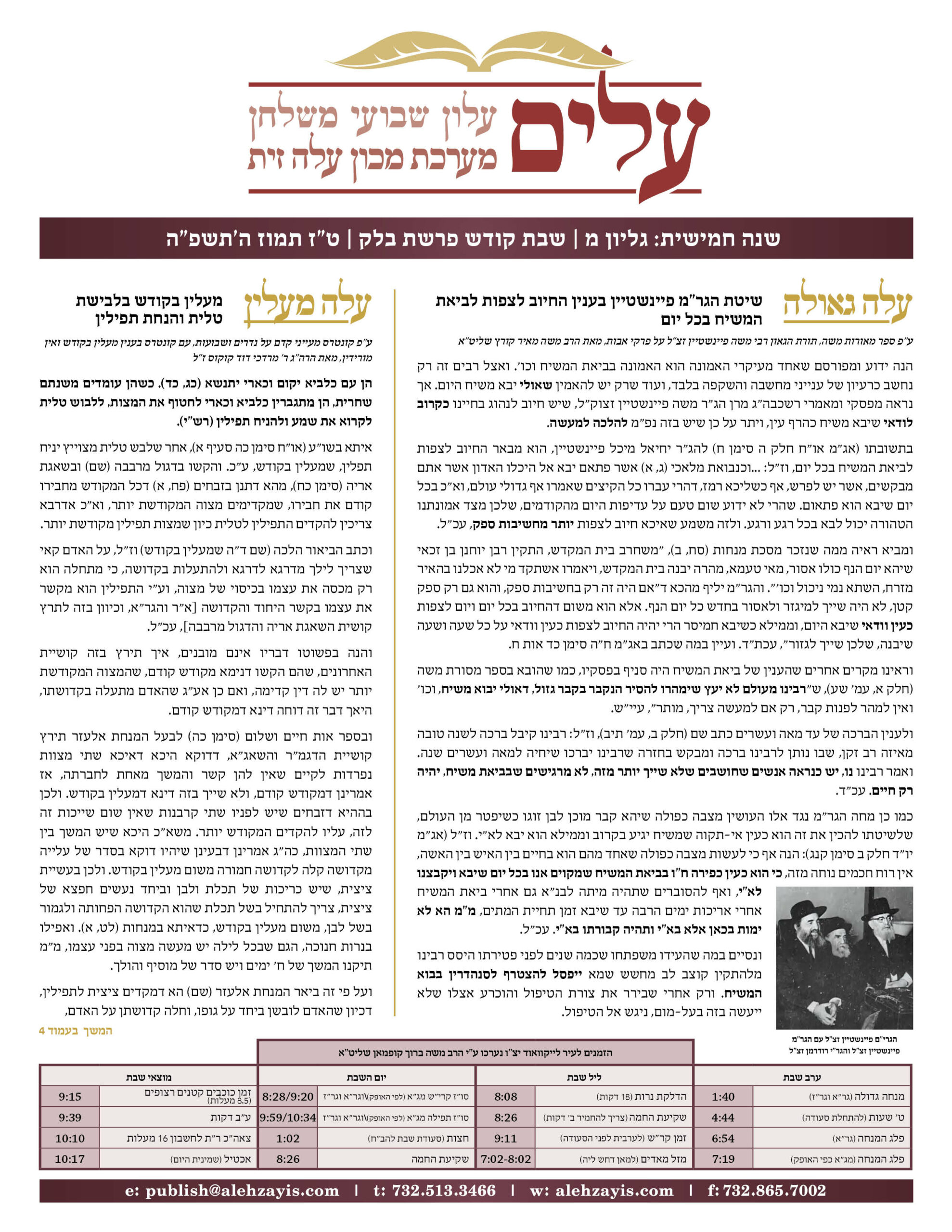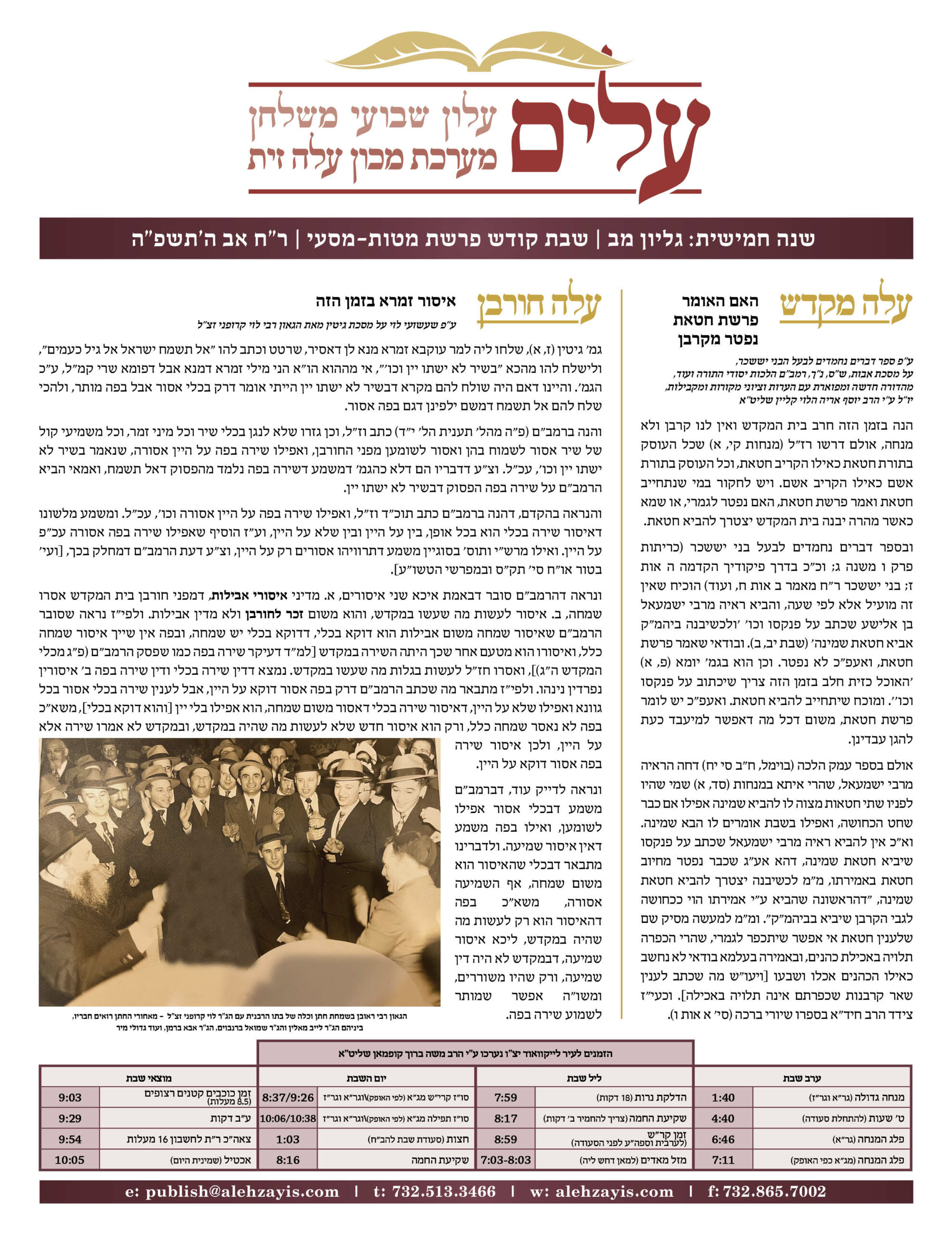 Shabbos Gilyon Pinchas 5784