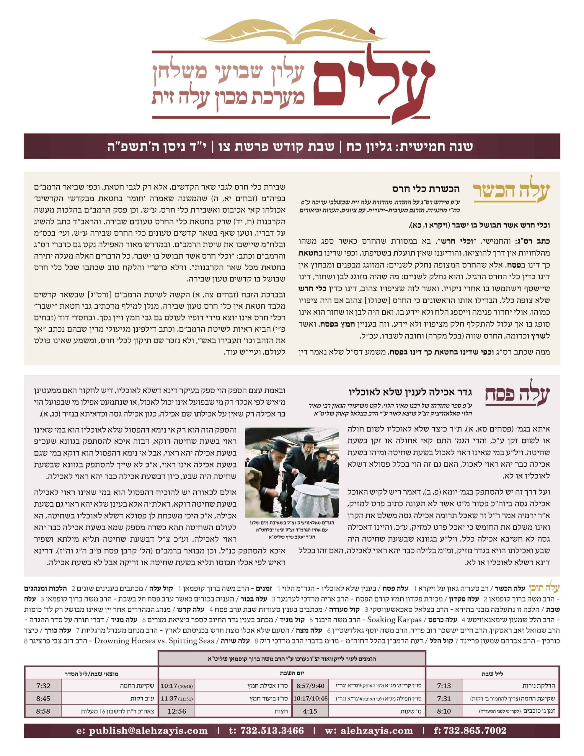 Shabbos Gilyon Tzav 5785