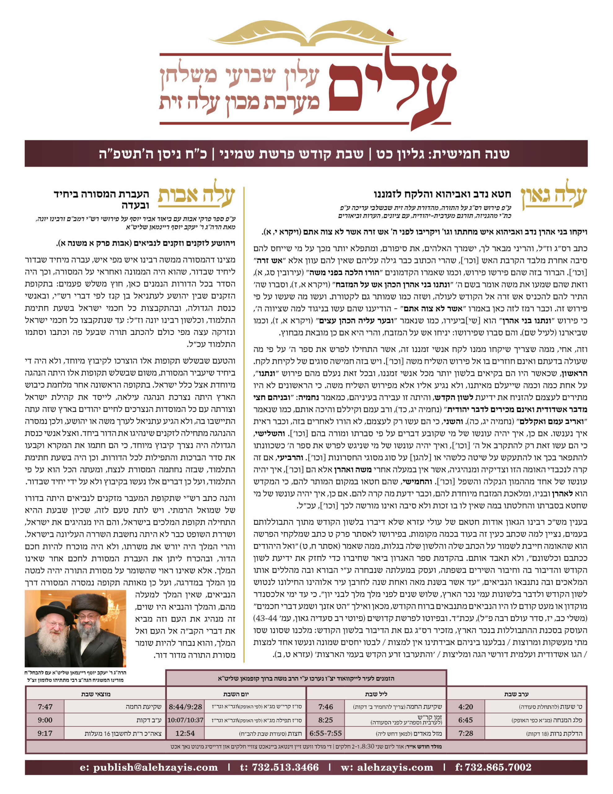 Shabbos Gilyon Shemini 5785