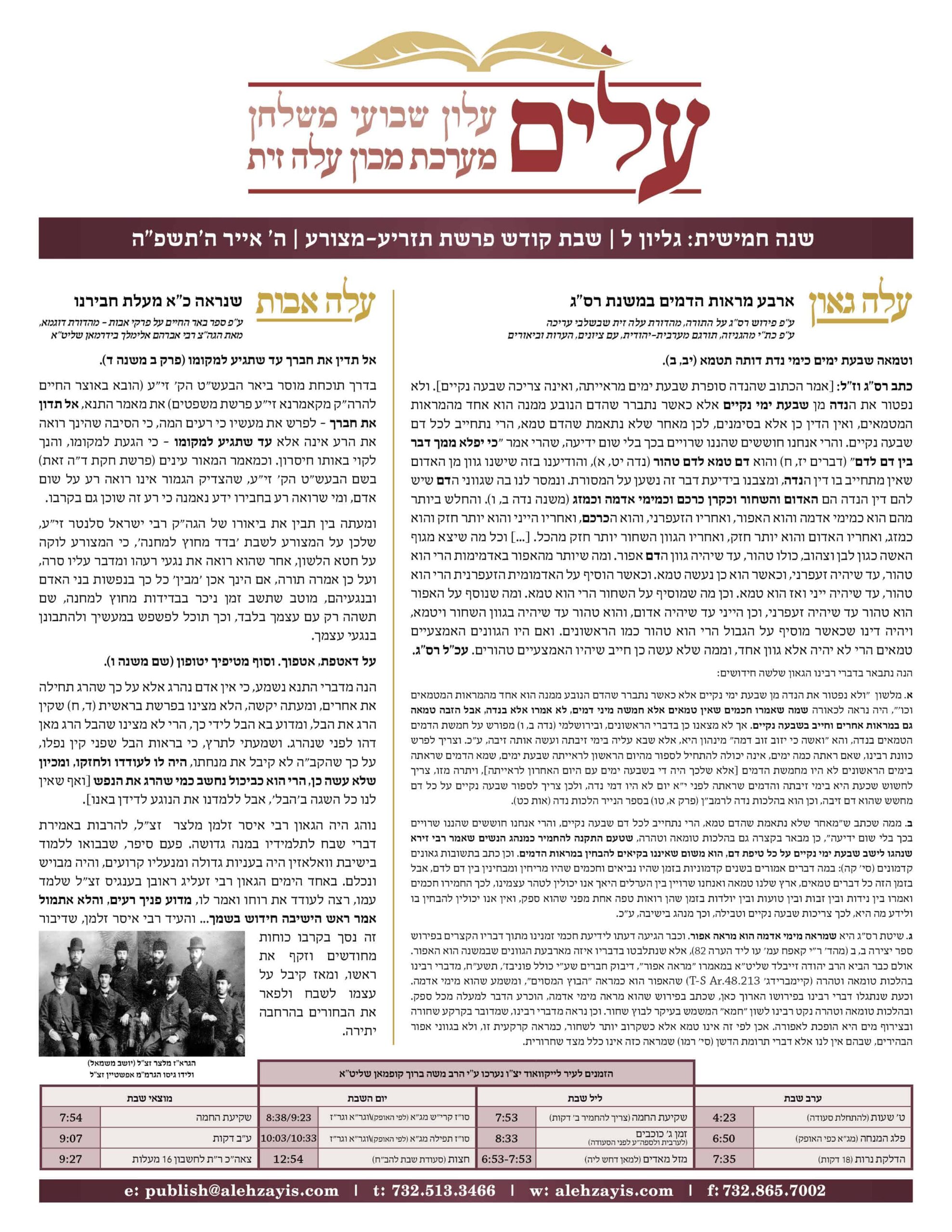 Shabbos Gilyon Tazria Metzora 5785