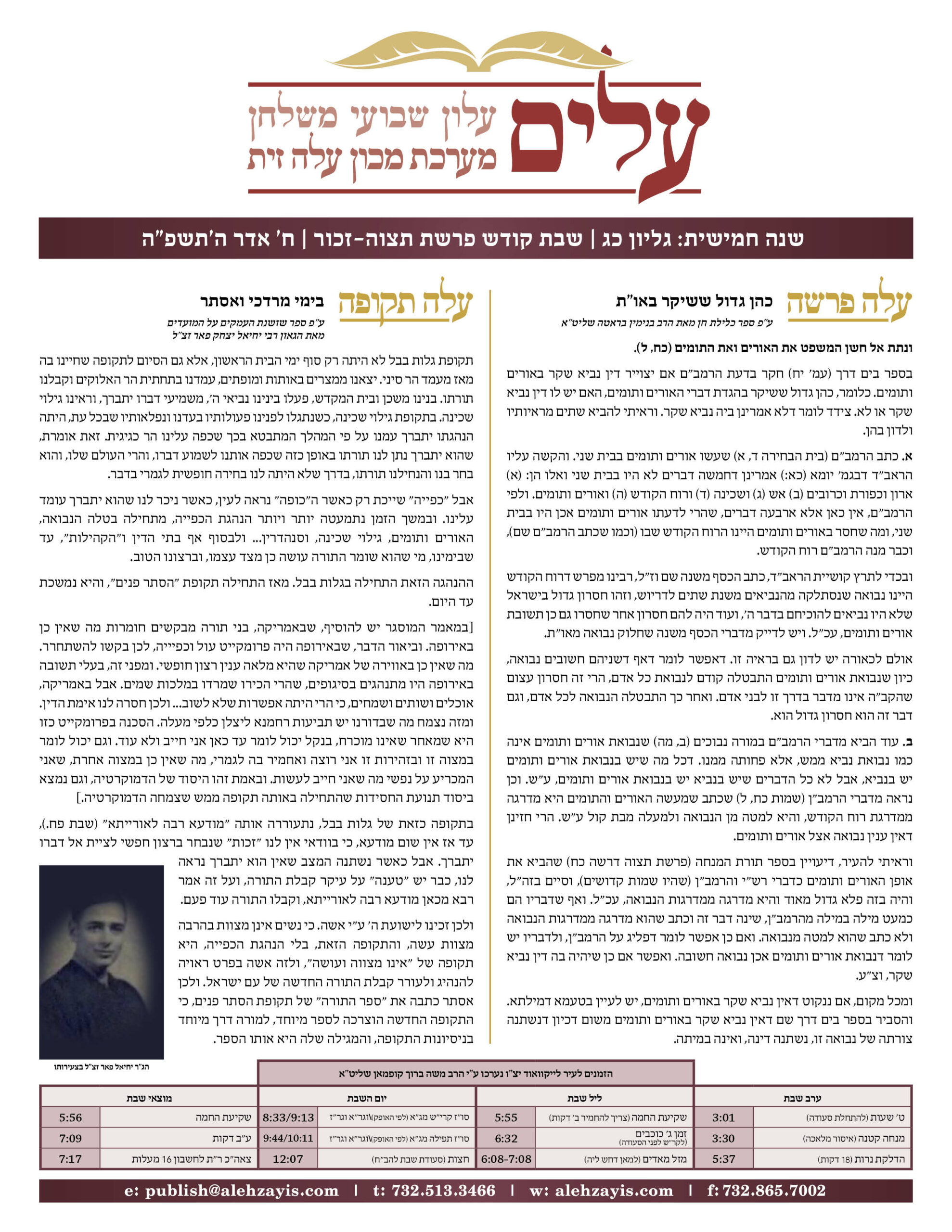 Shabbos Gilyon Tetzaveh 5785