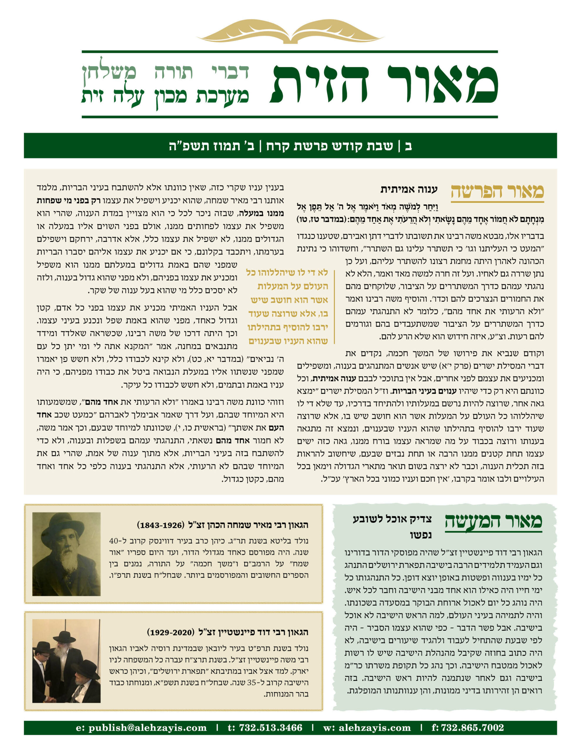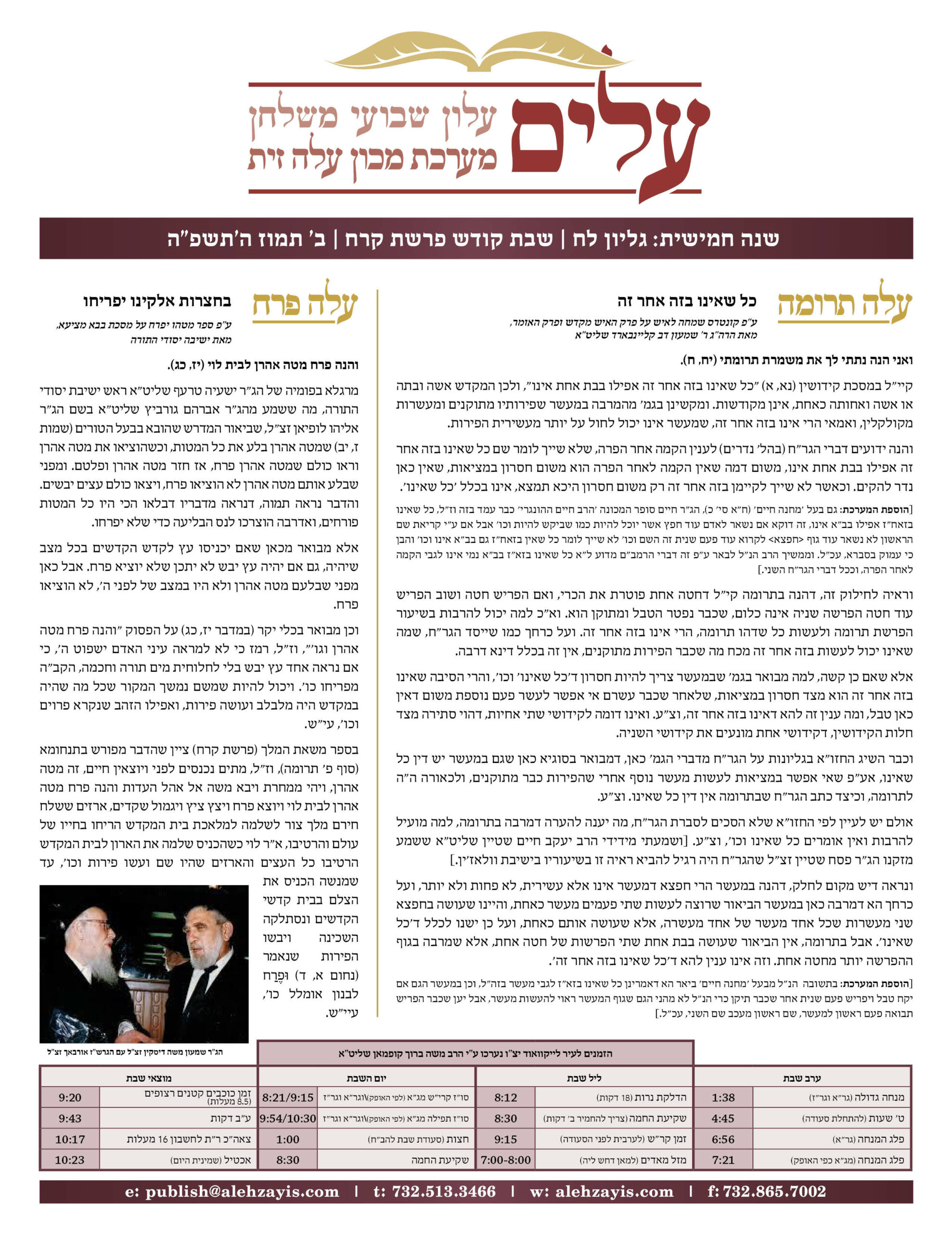 Shabbos Gilyon Korach 5784