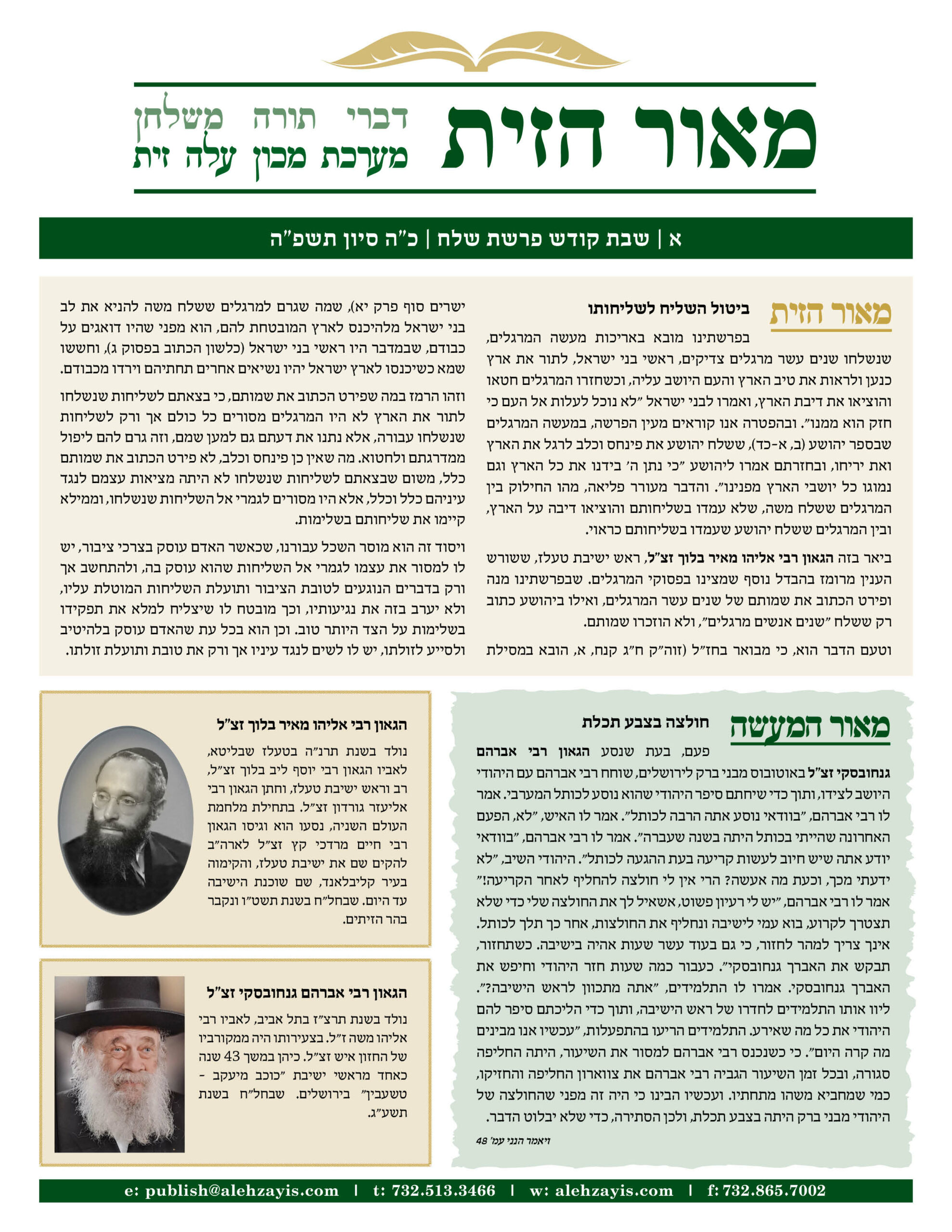 Shabbos Gilyon Shelach 5784
