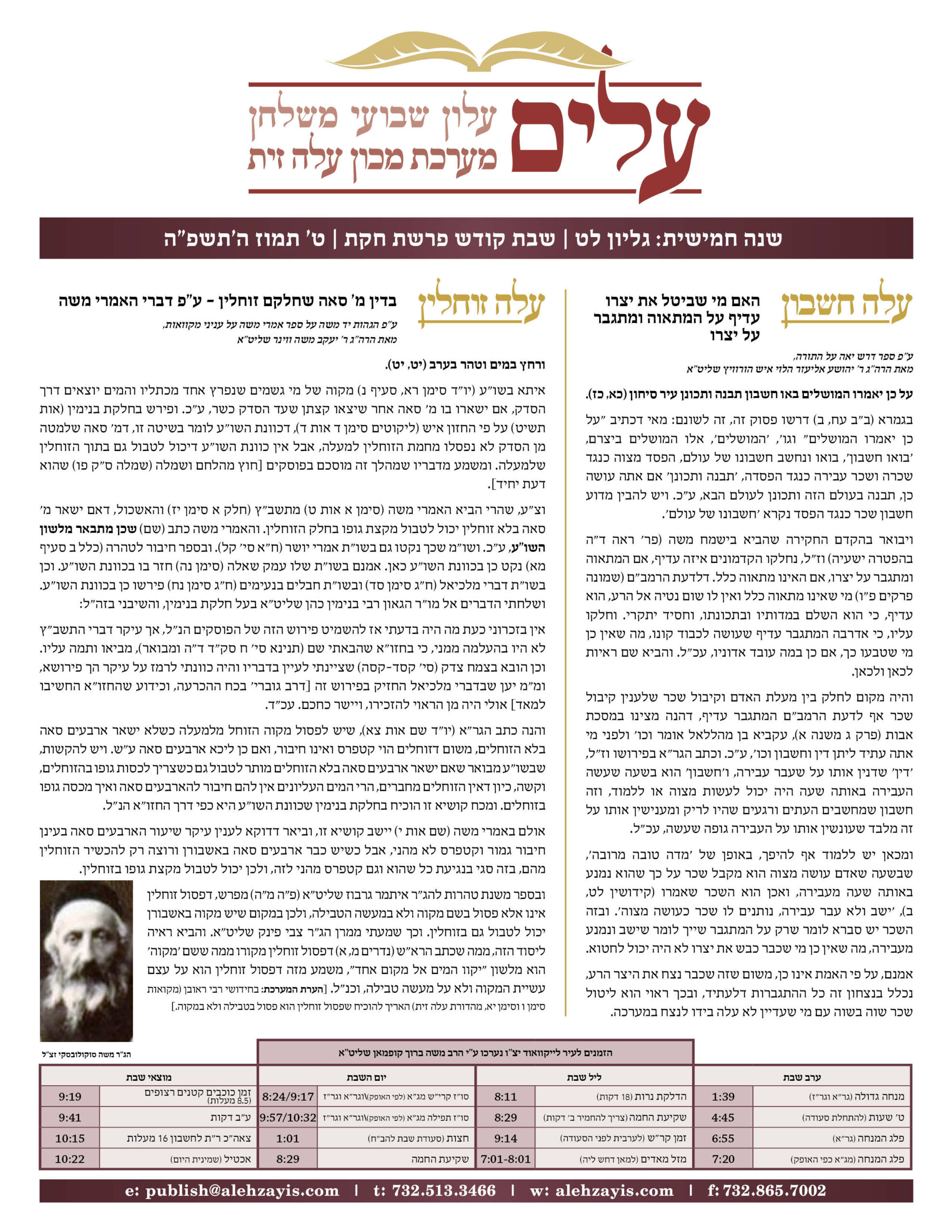 Shabbos Gilyon Chukas 5784