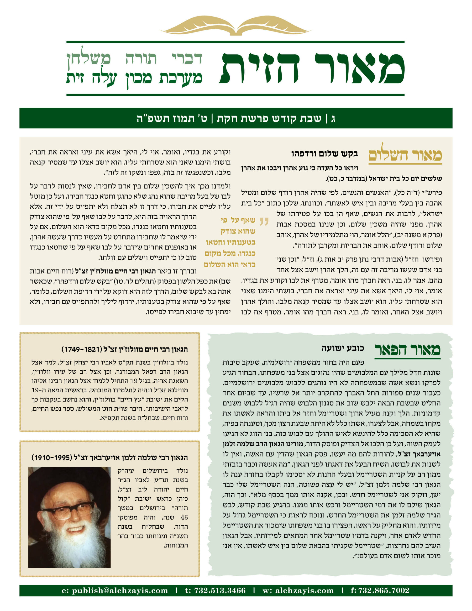Shabbos Gilyon Chukas 5785