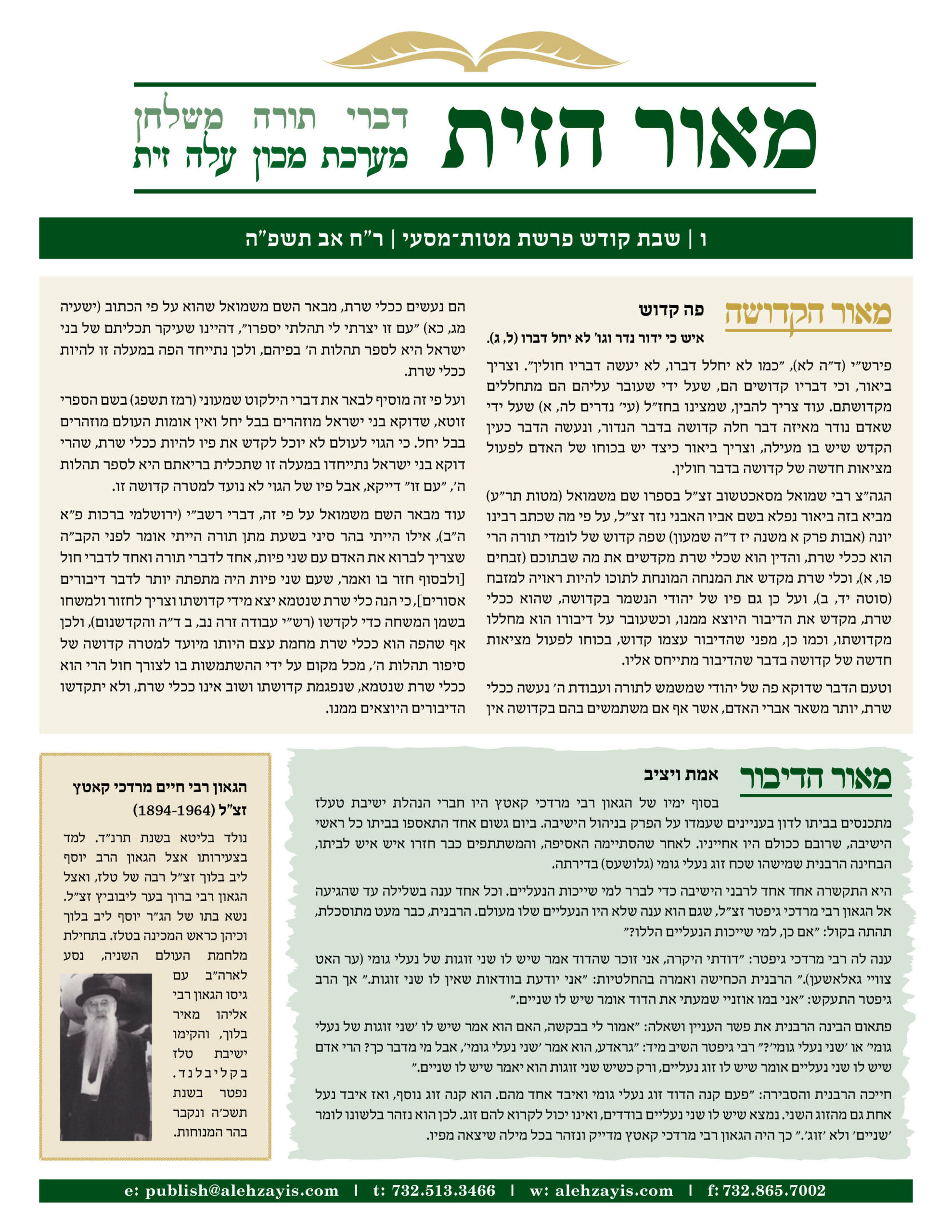 Meor Hazayis Matos Masei 5785