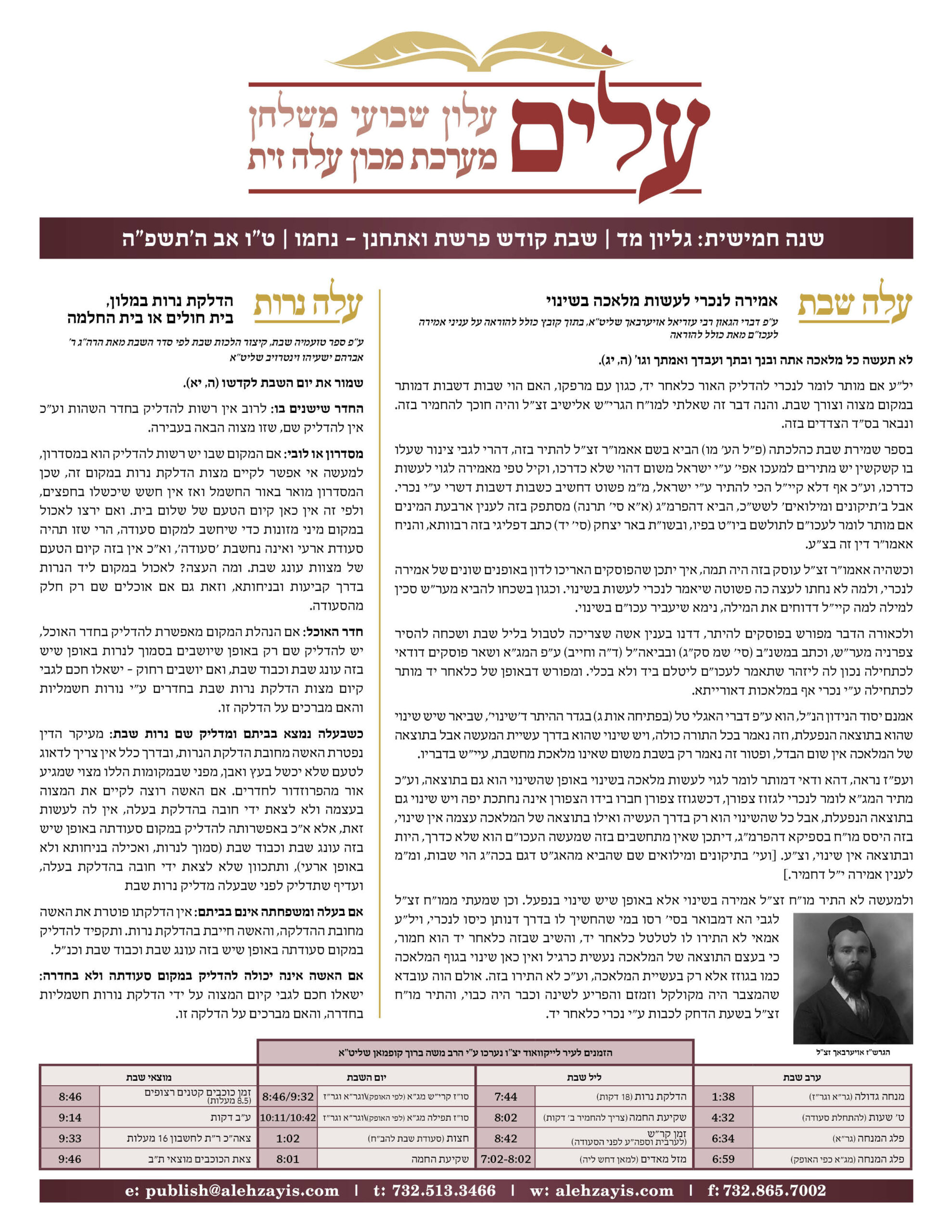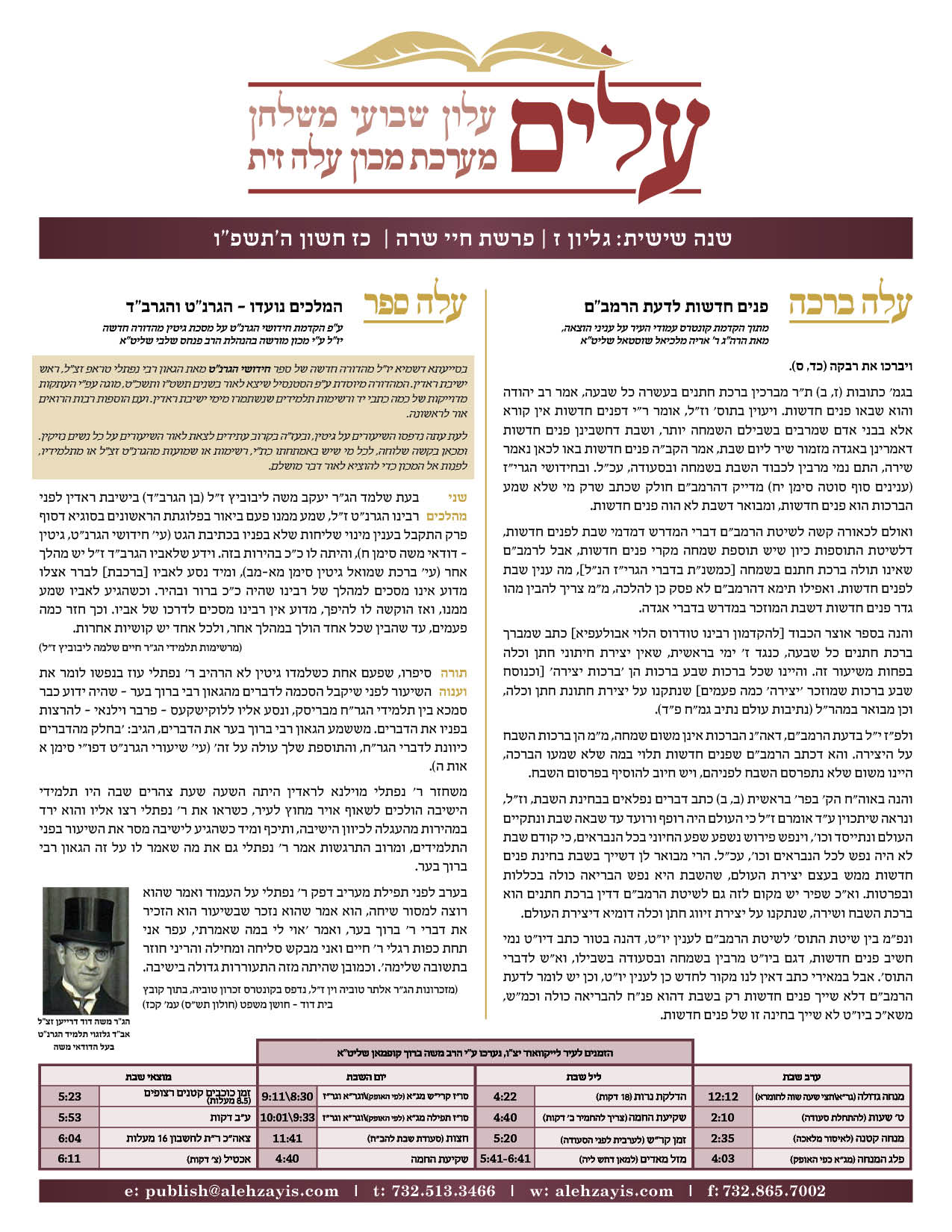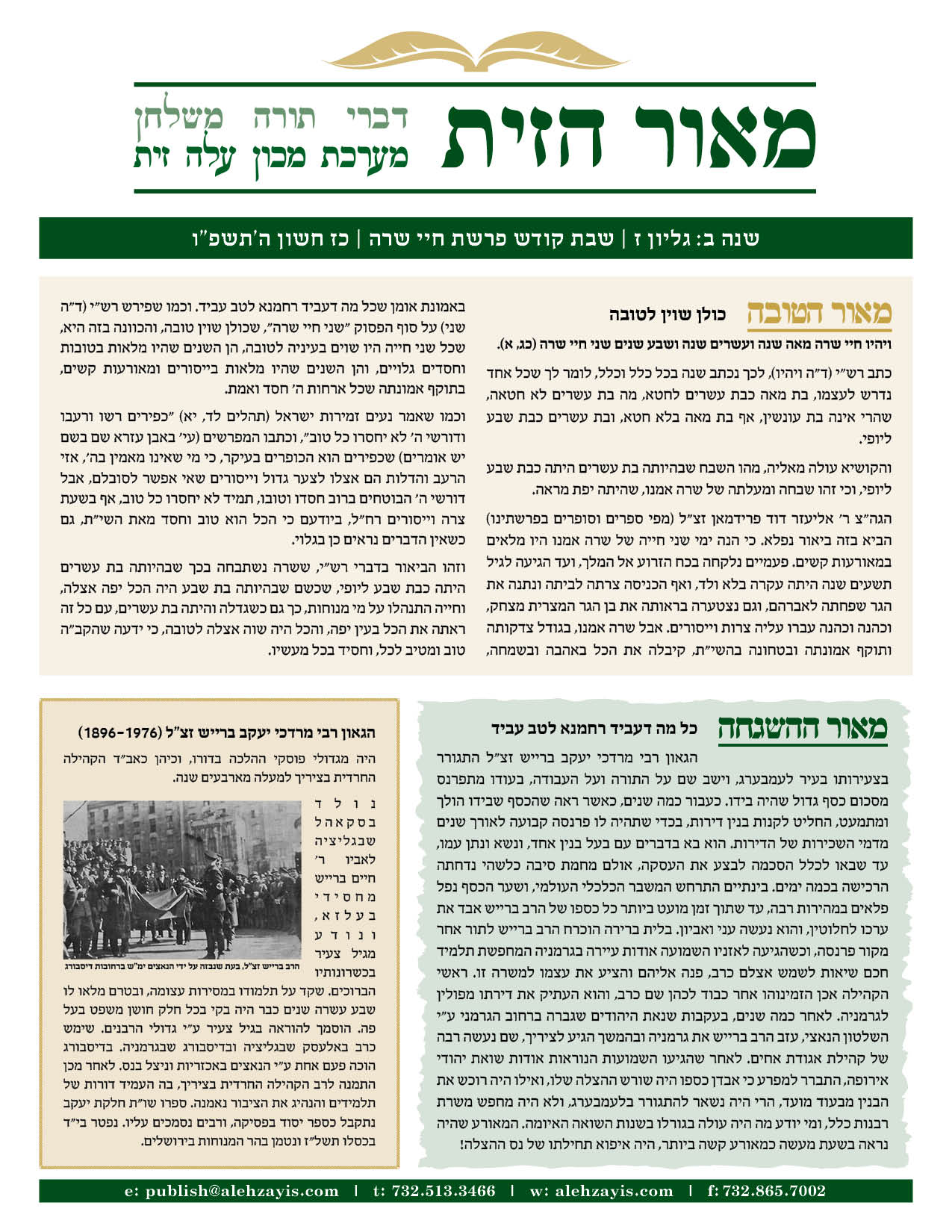 Shabbos Gilyon Chayei Sarah 5785