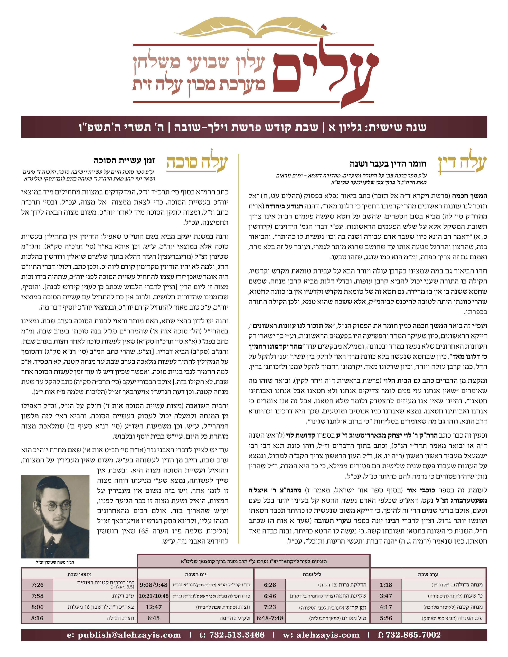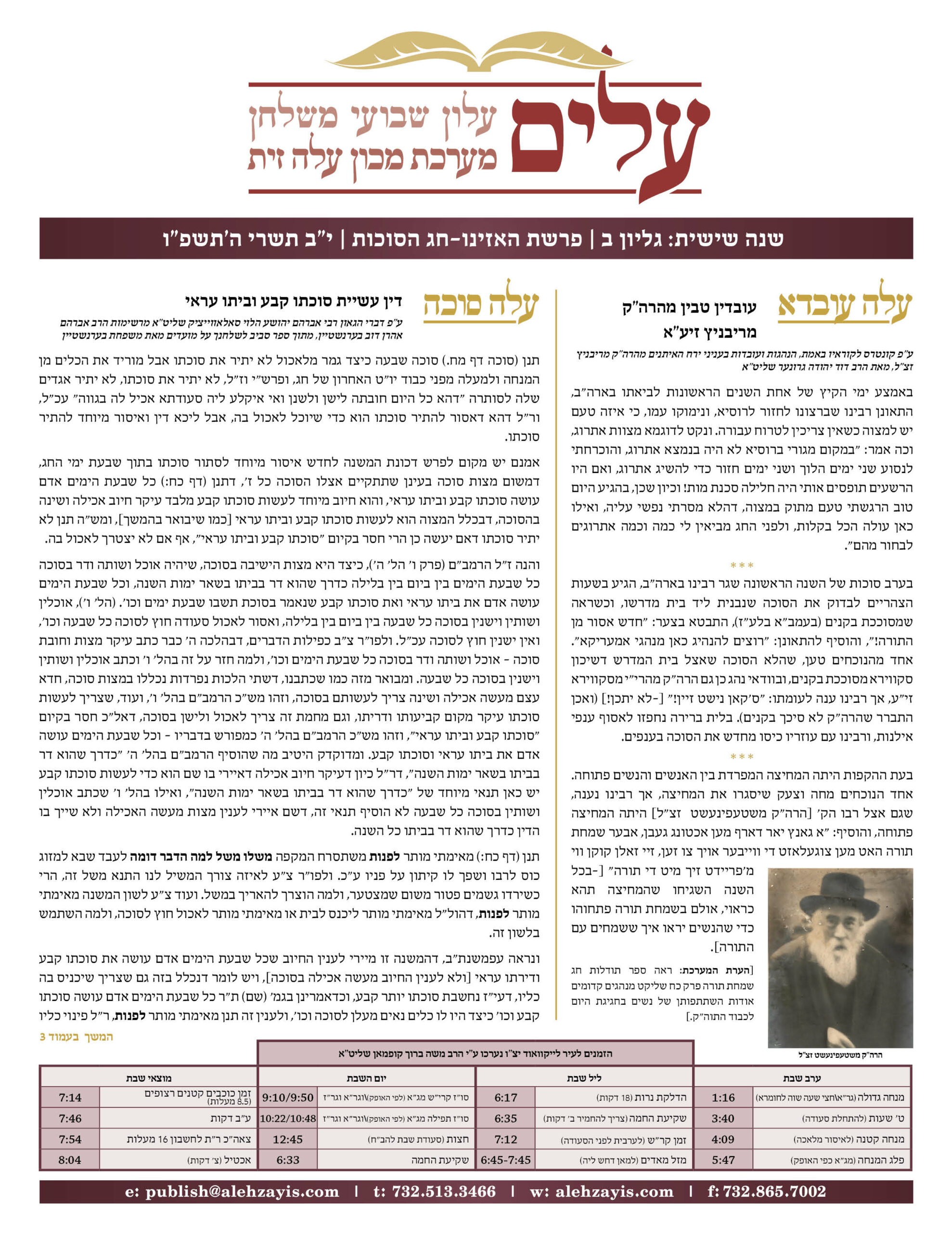 Shabbos Gilyon Haazinu-Sukkos 5786
