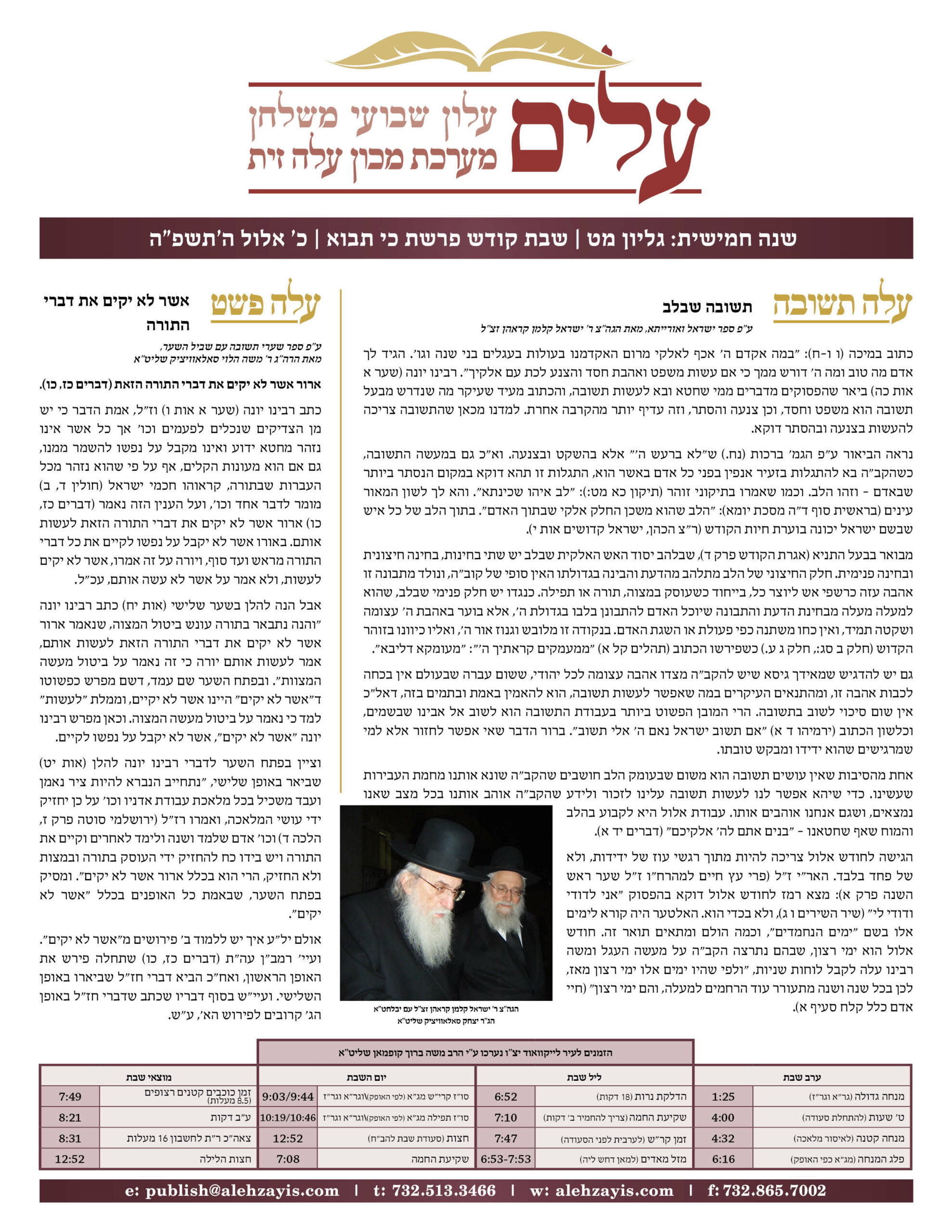 Shabbos Gilyon Nitzavim 5785