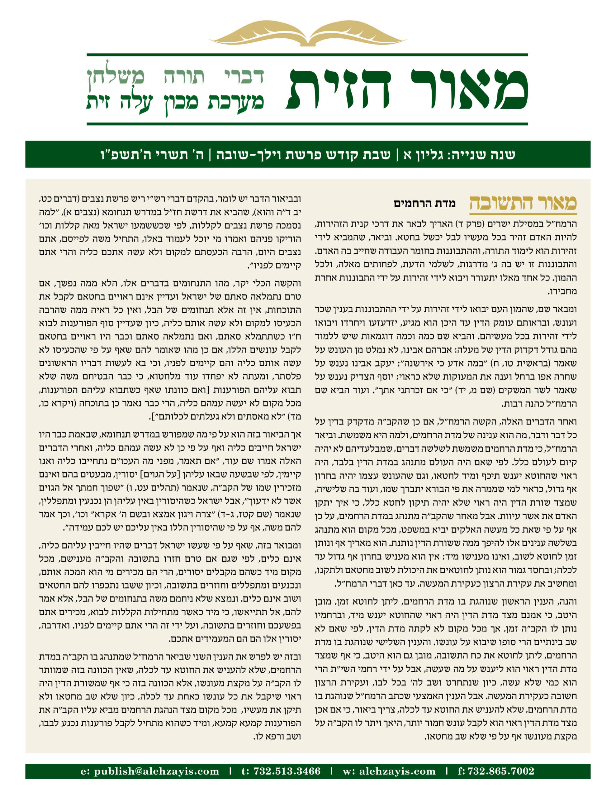 Meor Hazayis Savo 5785
