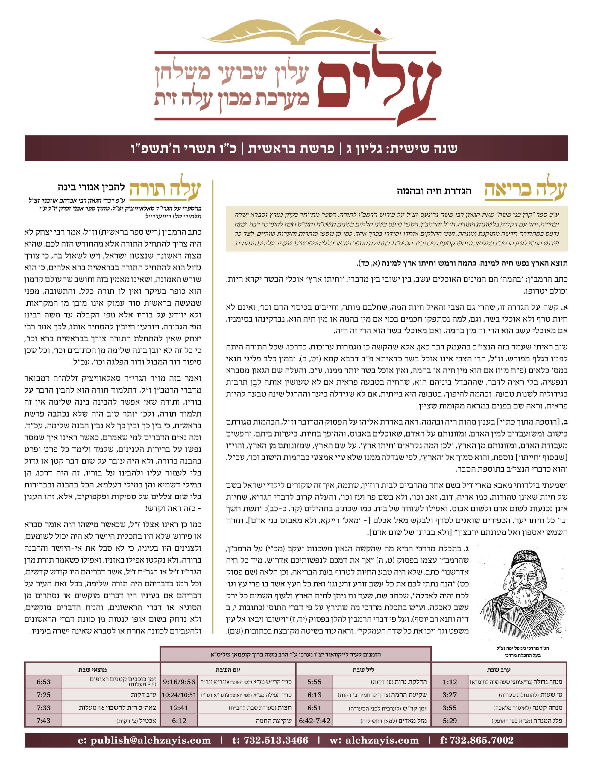 Shabbos Gilyon Bereishis 5786