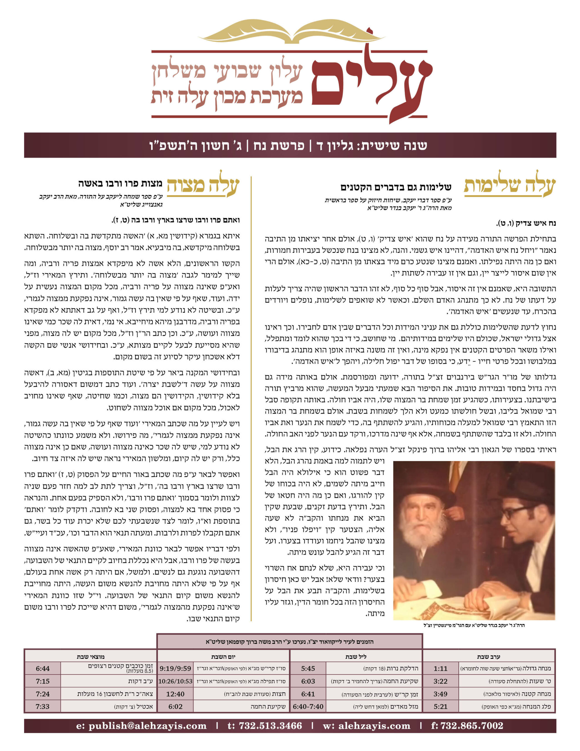 Shabbos Gilyon Noach 5785