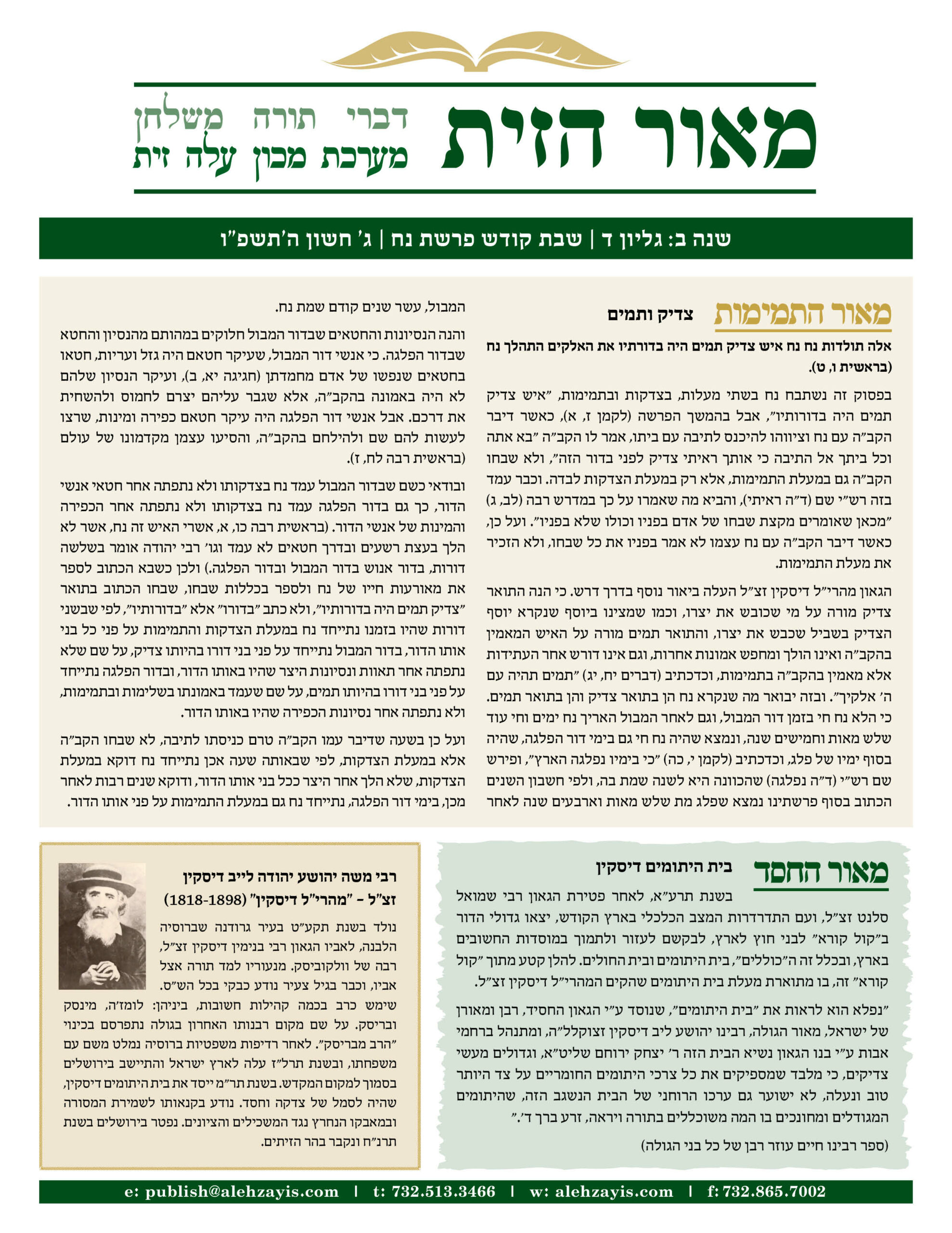 Shabbos Gilyon Noach 5786