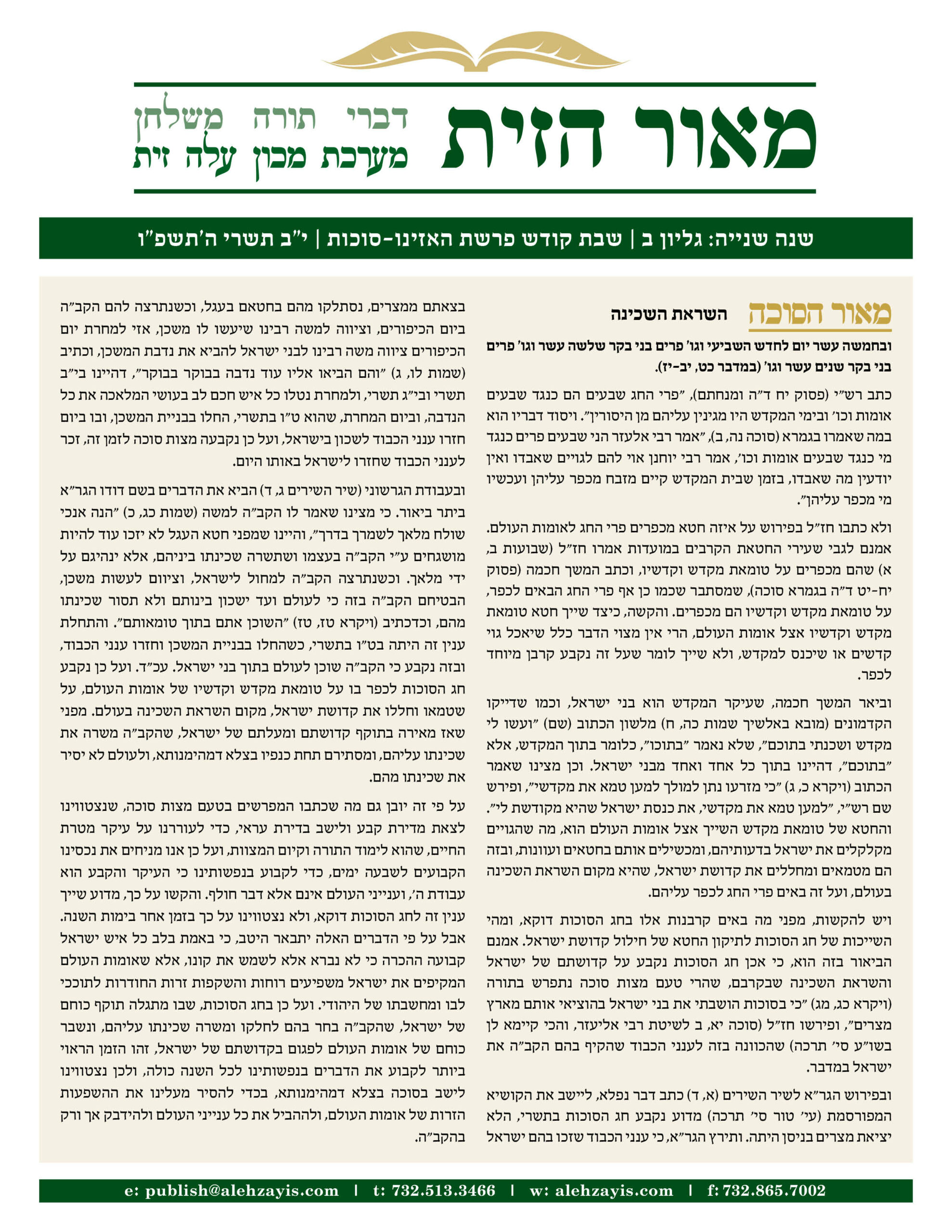 Meor Hazayis Haazinu-Sukkos 5786