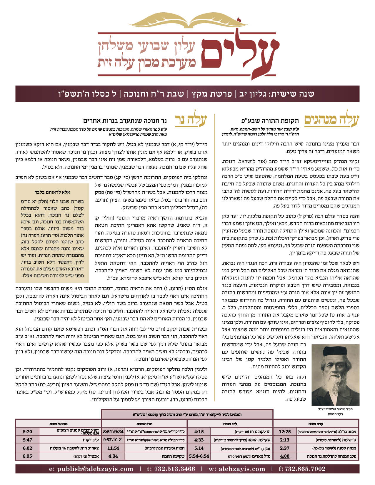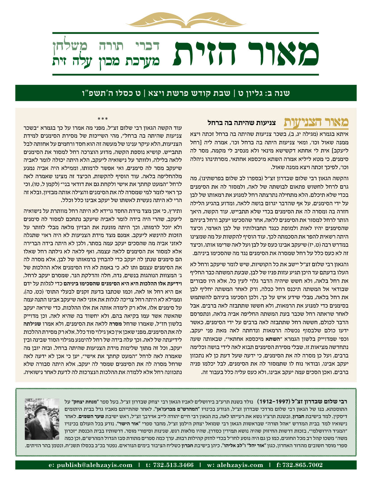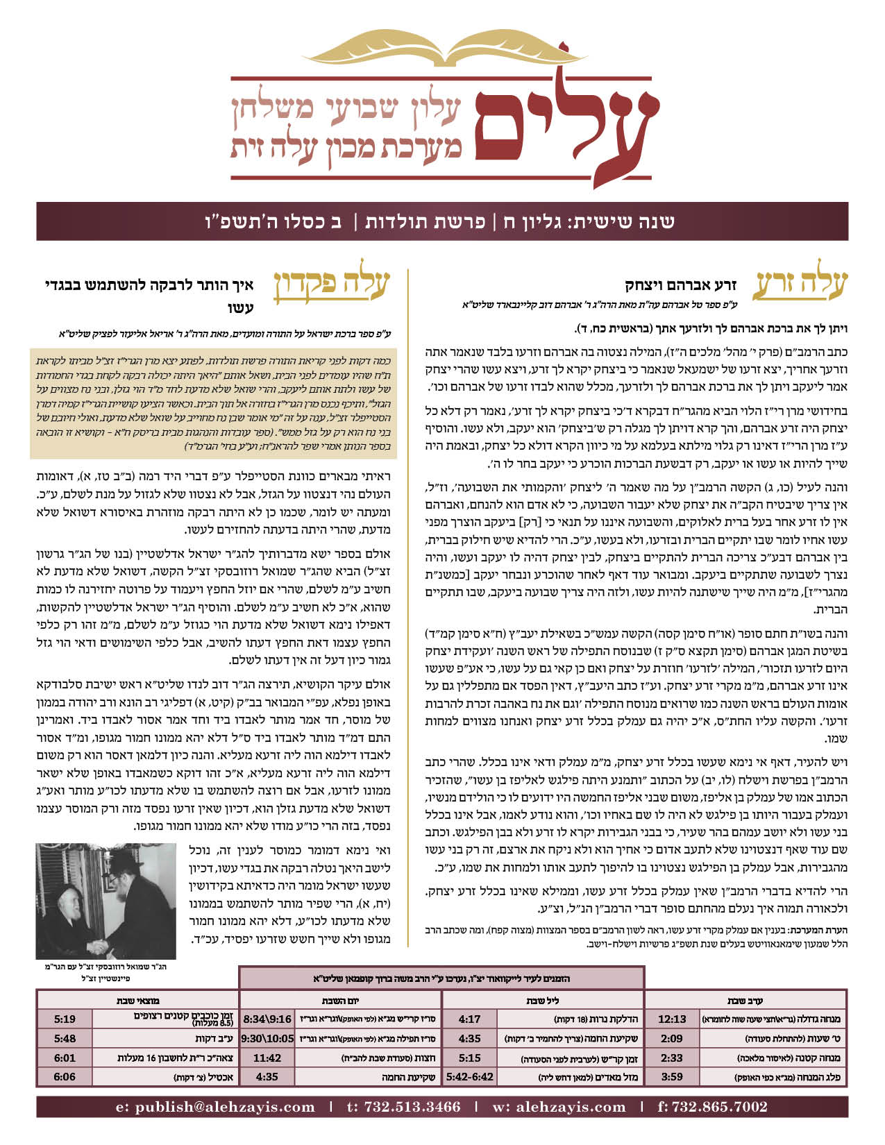 Shabbos Gilyon Toldos 5786