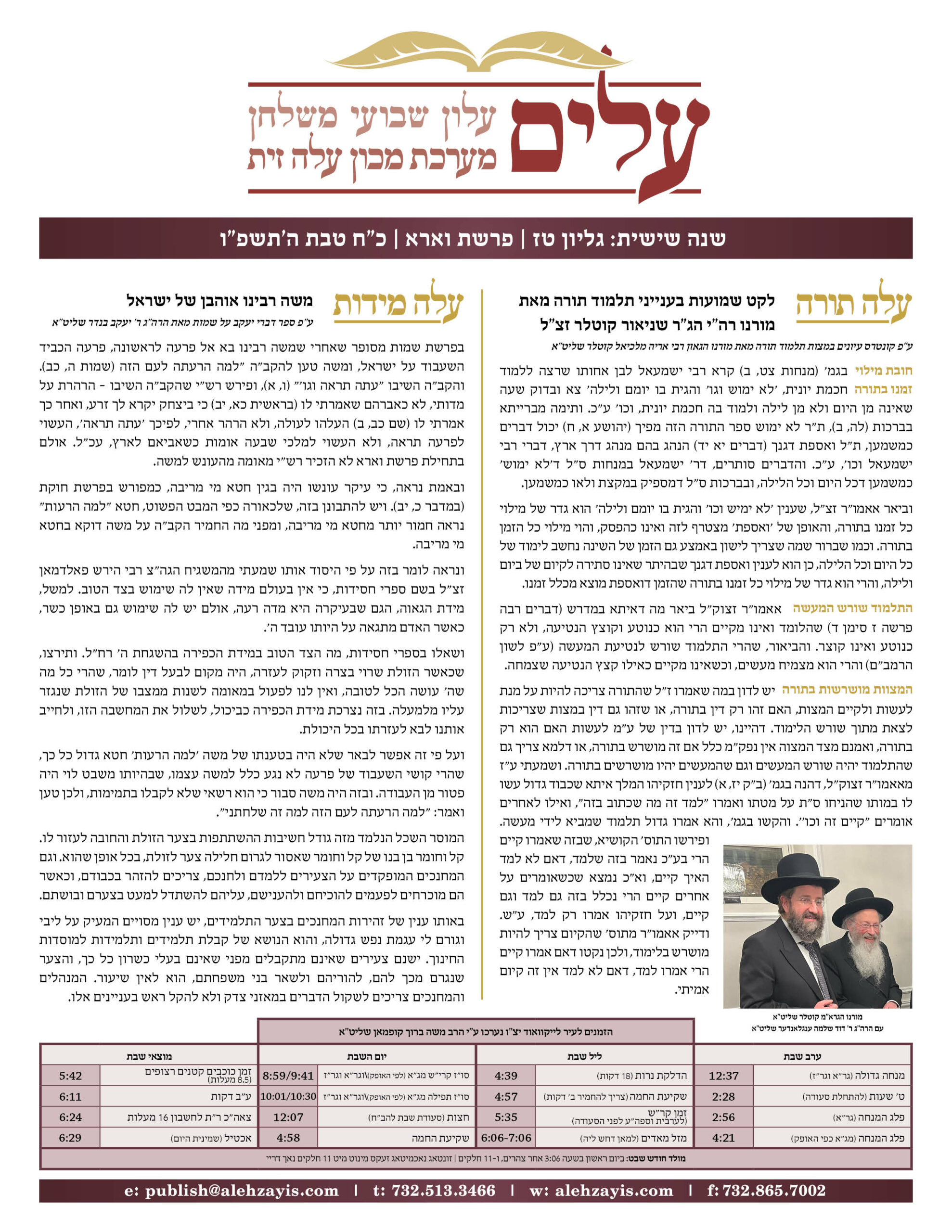 Shabbos Gilyon Vaera 5785