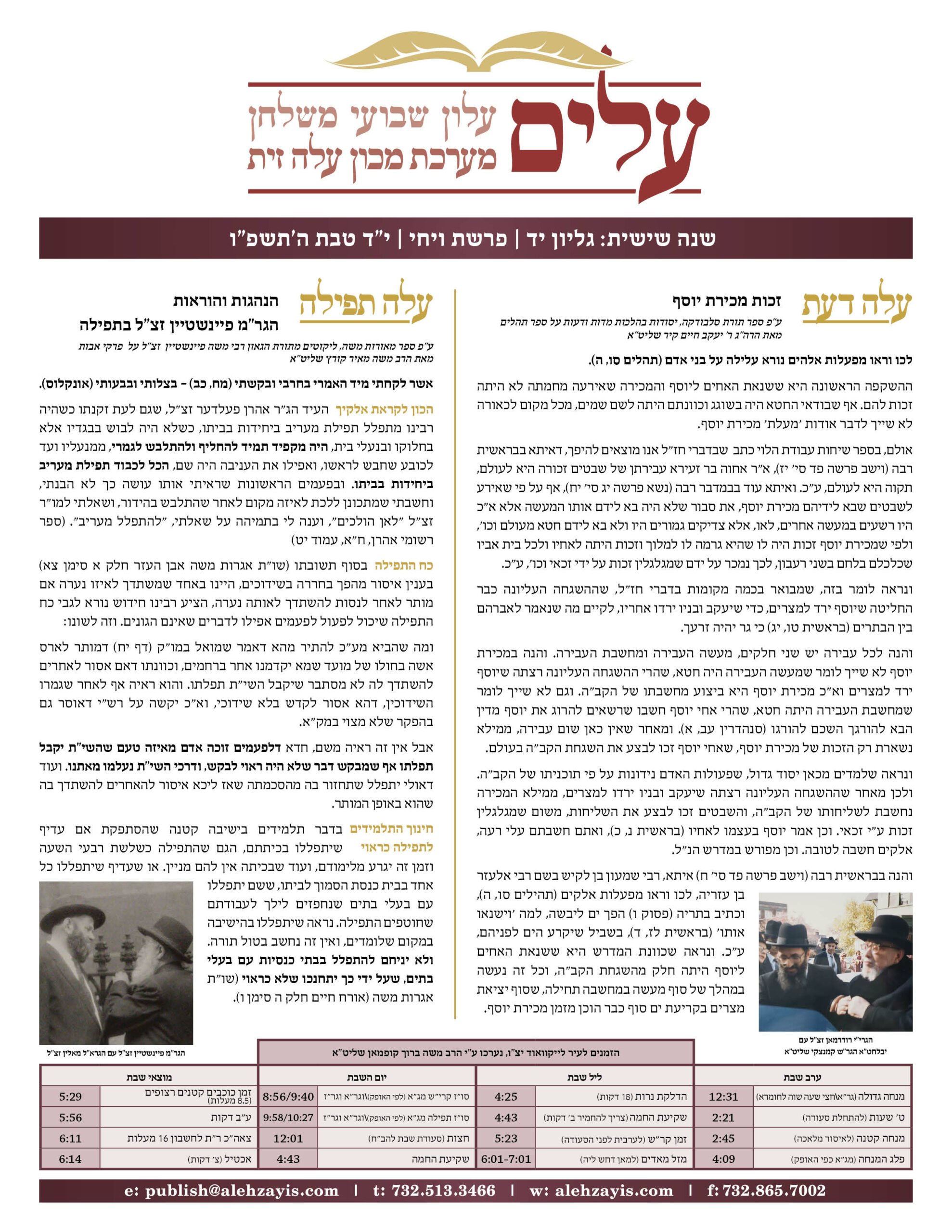 Shabbos Gilyon Vayechi 5785